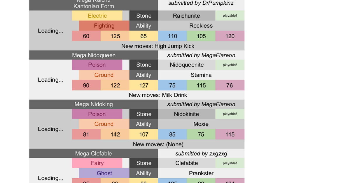 Porygonite: +0 HP +10 ATK +20 DEF +50 SP ATK +10 SP DEF +10 SPD Ability: Buggy Mess (Every turn has a 25% chance to boost a random stat by +2 and another 25% chance to decrease a random stat by 2)
